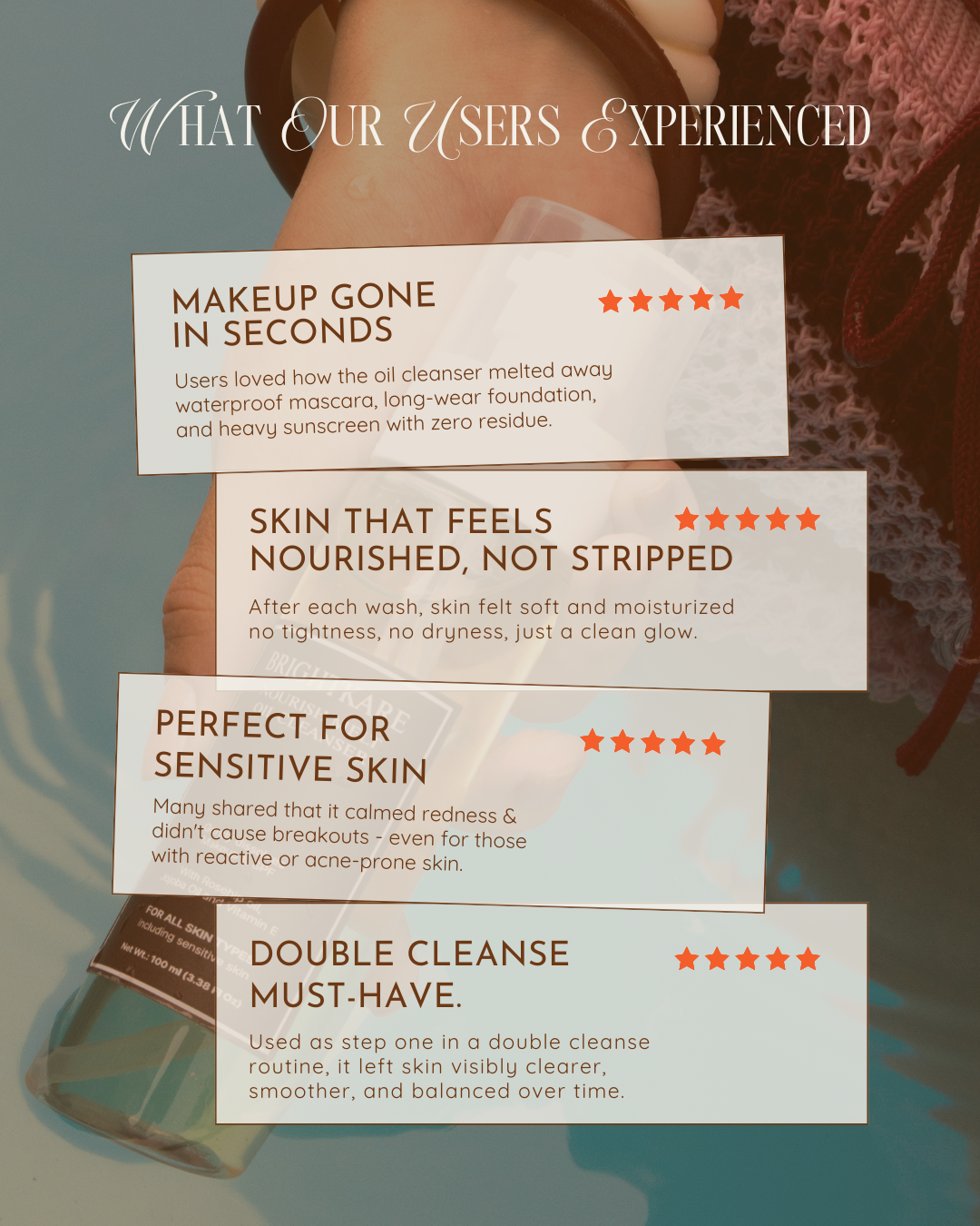 Experience instantly softer, smoother, and visibly refreshed skin from the very first cleanse. With regular use, pores appear refined, makeup and buildup melt away effortlessly, and your skin feels deeply nourished — never tight or greasy. Expect a healthy, hydrated glow that looks as good as it feels, every single day.